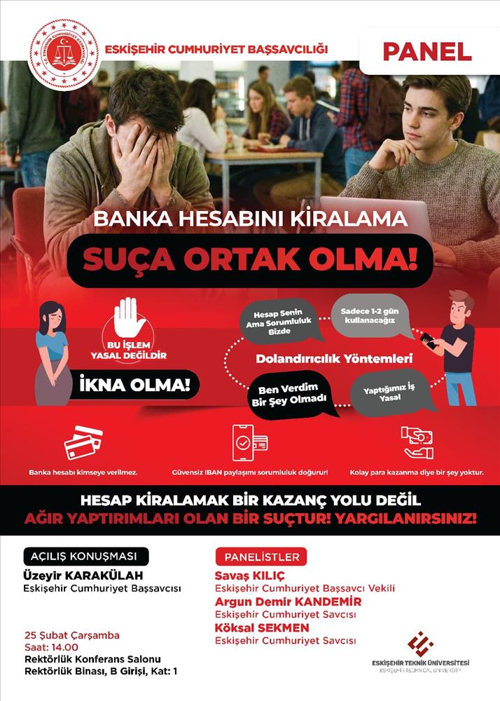 "Banka Hesabını Kiralama Suça Ortak Olma!" Konulu Panel düzenlenecektir.