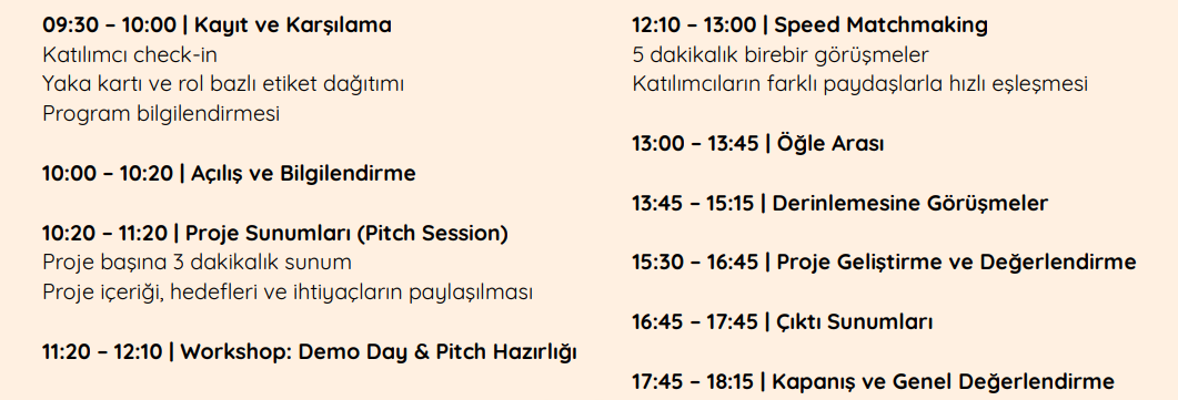 Projesi olan ya da proje fikri geliştirmek isteyen; özellikle tasarım, animasyon, giyilebilir teknolojiler, yazılım, oyun ve oyun teknolojileri alanlarında üretim yapmak isteyen öğrenciler ve akademisyenler için bu etkinlik kurgulanmıştır. Etkinlik amacı, doğru paydaşları bir araya getirerek gerçek etkileşimler yaratmak ve katılımcıların somut çıktılarla ayrılabildiği bir ortam oluşturmaktır.